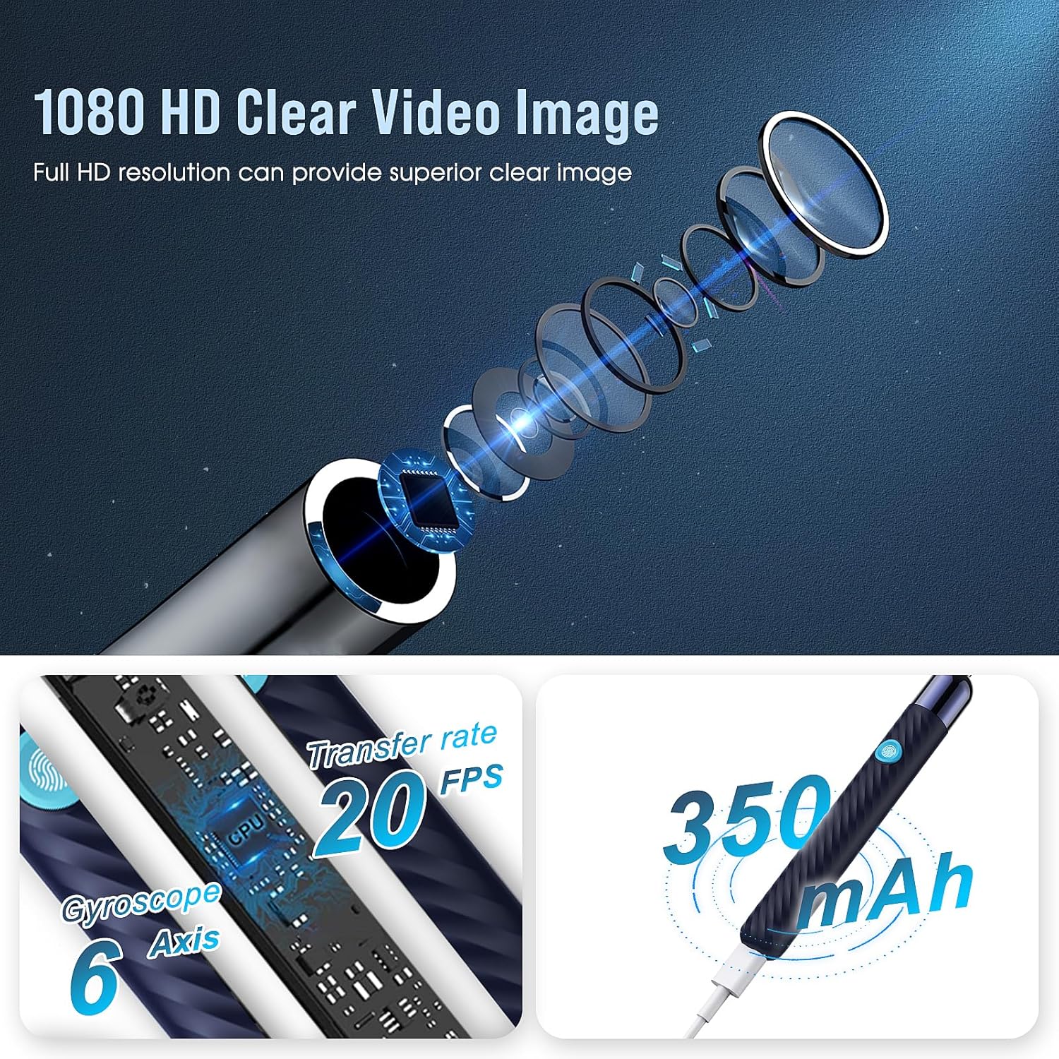 Ear wax removal tool camera is equipped with a 360° wide-angle lens to provide a large covered field of view. The built-in 6-axis gyroscope can provide stable and smooth image transmission even when rotating, and maintain a stable and accurate video direction.