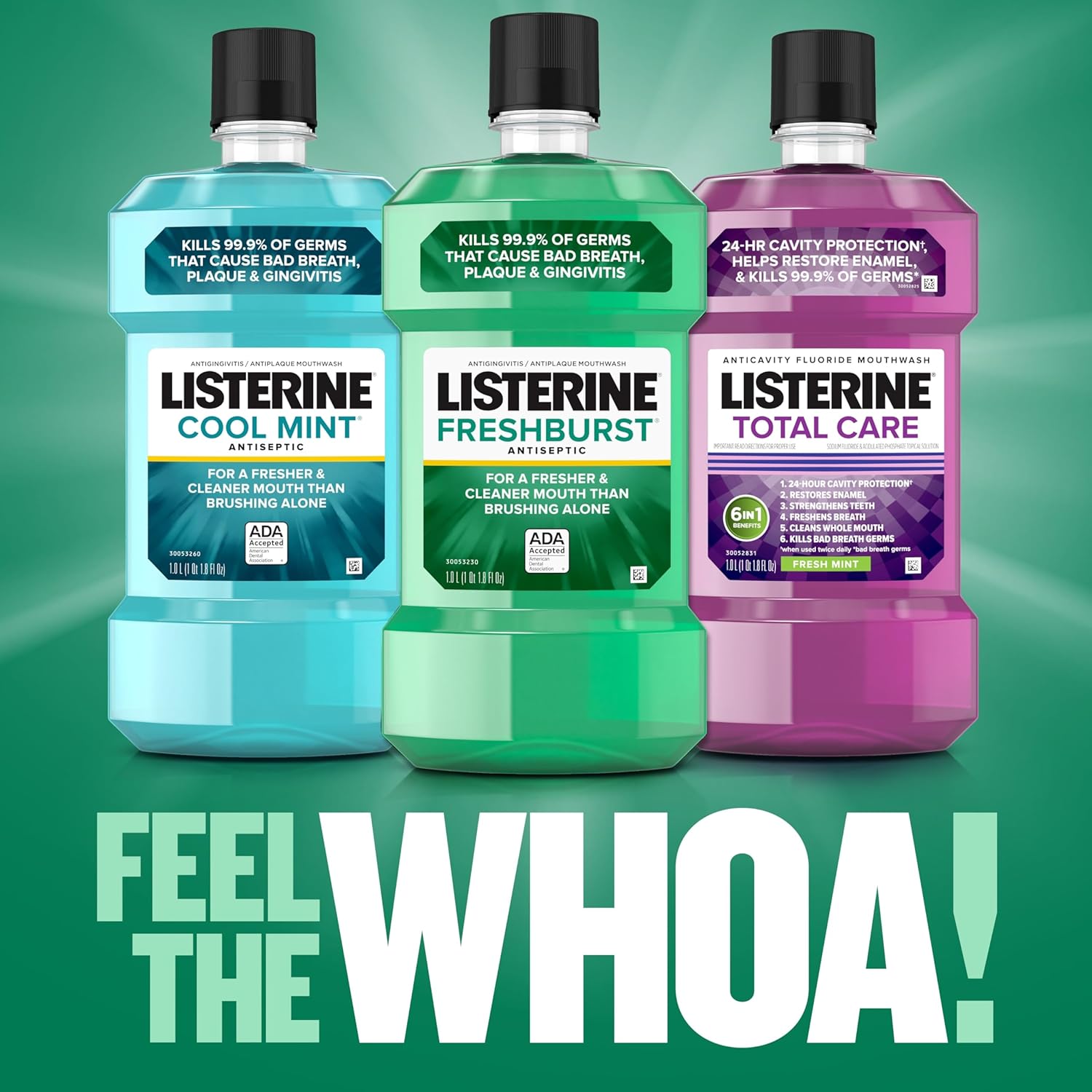 LISTERINE FRESHBURST Antiseptic Mouthwash has a great-tasting spearmint flavor that strikes fear into germs gives you that feeling of whole mouth clean and refreshed. Just 30 seconds of rinsing twice a day for clinically proven oral health benefits & 24-hour protection against germs that cause bad breath, plaque, and gingivitis.